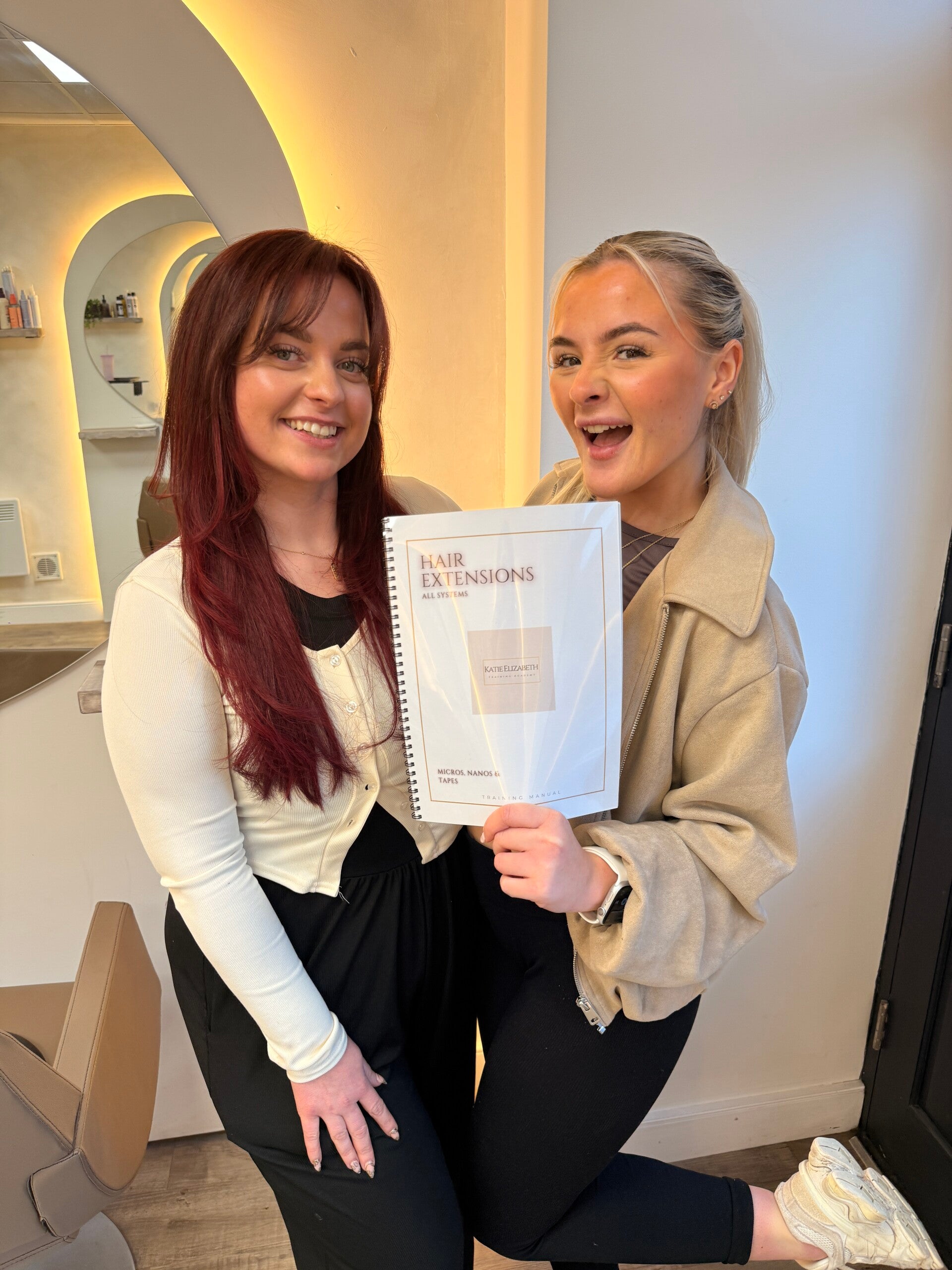 Here at Katie Elizabeth Training Academy, we offer three of the most popular methods. Micro Rings, Nano Rings and Tape-In extensions. Each method is taught with expert guidance to ensure you gain the skills and confidence needed to start your career.